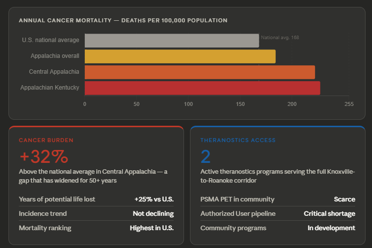 The appalachian radiotheranostic coalition (ARC) is a new regional initiative that hopes to increase awareness, education, and adoption of theranostics in the applachian region. This initiative is being created to serve as a blueprint for easy rollout into other areas across the United States and globally.
